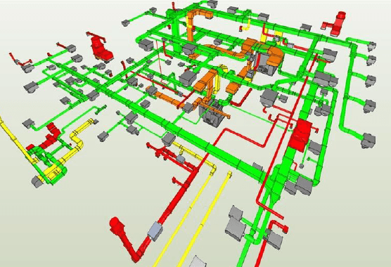 ダクト設計においては、3D CADの機能を活用し、3 次元モデリングでダクトの圧力損失、局部圧力損失を計算しながら、図面作成などを効率的に行っています。