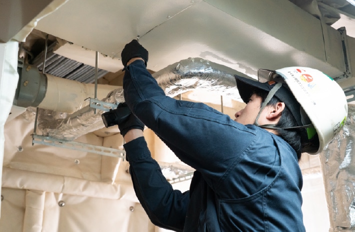 ダイキンMRエンジニアリングは、単に空調・冷凍機を設置するだけにとどまらず、空調効率を最大化するために、空調機メーカーとしての知見を活かした船舶用ダクトの設計・製作・施工を行っています。これらを一括して受託・対応できる事業者は少なく、希少な事業者のひとつです。