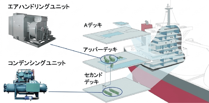 中国の造船所と連携し、さまざまな船種の空調・冷凍機の設置に関して、最適な機器の選定やシステム設計をサポートします。